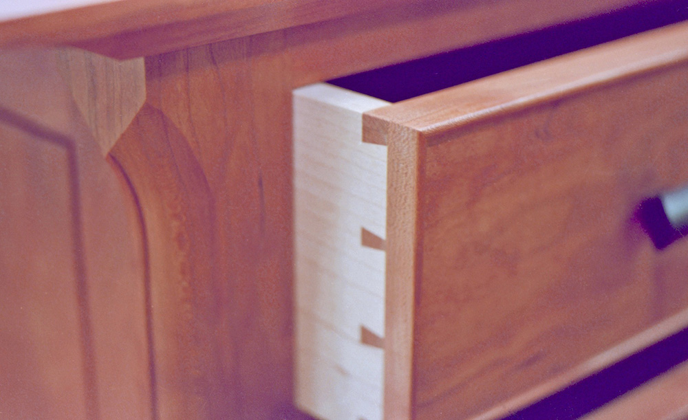 Finding the right log is key with pieces like this: the curl needs to be tight, consistent, and run across the width of the widest boards. The red maples, the so called “soft” maples are the best. Sensible enough, there must be enough lumber in the log to build the entire piece. When you mix maples from different trees, there’s never an exact match. A poodle’s head belongs on a poodle, not on a Shih-Tzu.